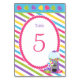 A cute and sweet candy themed table place card. Featuring stripes and colourful candy. Easily personalize for your birthday party, Bat Mitzvah and more!
