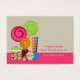 A set of 100 recipe cards (chubby business cards) featuring an illustration of a jar of gumballs, three lollipops, stick candy, a piece of chocolate, and a cupcake. Personalize with your name. Write your recipe on the back.