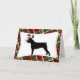 Fun Cane Corso Card has a dog breed silhouette, with reindeer antlers and a bright red glowing nose. The background is a cheery holiday plaid with reds and greens. The inside reads, "Wishing you and your family a wonderful holiday season!" Personalize the message to your own easily. Cute dog lover Christmas cards.