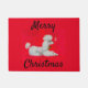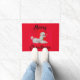 Belle image vintage de caniche blanc sur tapis de sas rouge.