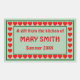 Les autocollants rectangulaires sont fournis en feuilles de quatre, et sont entièrement personnalisables. Modifiez le texte à tout ce que vous voulez. Cet autocollant comporte une bordure brillante de coeurs rouges sur un arrière - plan vert, et une grande zone de texte personnalisable. Convient à la sauce tomate, sauce aux pâtes, sauce marinara, conserverie, jarretelles, confitures, pesto, salsa, partout où votre génie de cuisine vous emmène ! Créez des étiquettes pour faire de beaux cadeaux de votre cuisine.