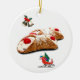A tasty Italian cannoli is the centerpiece of this holiday themed ornament.