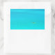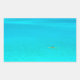 Autocollant photo rectangulaire d'un homme barbotant dans un canot à outrigger dans le lagon bleu vif de l'île tropicale Bora Bora près de Tahiti dans l'archipel Pacifique Polynésie française.