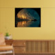 Canoe and crescent moon on a lake poster