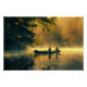A digital illustration of a canoe in a peaceful river simulating realistic photography.