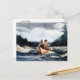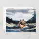 A fine art postcard with the watercolor painting by the American artist Winslow Homer (1836-1910), Canoe in Rapids (1897). A landscape of two men