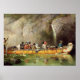 Canoe Manned by Voyageurs Passing a Waterfall Poster