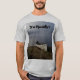 A photograph of a peaceful canoe resting on the shore of a beautiful, misty lake adorns this fun shirt!