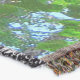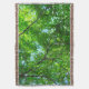 Throw blanket  in a pattern of leafy green tree branches silhouetted against a blue summer sky - digitally enhanced photography