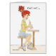 Girl with red hair sipping a soda in a soda fountain.