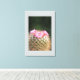 Canvas Art shown with a photo print of a pretty cactus with blooming pink flowers on a light grey canvas background. Customize this item or buy as is. You can even change the background colour to what you need.