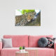 Canvas wall art shown with a photo print of a beautiful wild leopard cat in a tree.