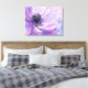 Canvas wall art shown with a photo print of a pretty purple flower.