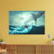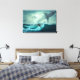 Canvas wall art shown with a photo art print of a surfer riding the wave among sharks.