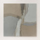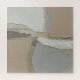 This is an original abstract painting characterized by its heavy texture and neutral, earthy color palette. The composition uses blocks and layers of muted colors—primarily creamy whites, soft beiges (or tans), and warm greys—applied with a palette knife to create a rich, three-dimensional surface. The rough texture of the underlying burlap or raw canvas is intentionally visible in several areas, adding an organic, rustic element to the modern, minimalist design. This piece evokes a sense of calm and is perfect for adding subtle sophistication to any contemporary or Scandinavian-inspired space.