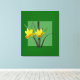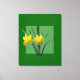 Daffodils. Image of two yellow and orange daffodils set against a medium green background with a diffused centre to form a frame, causing the flowers to look as if they are three dimensional.