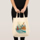 Sturdy cotton canvas tote bag featuring the 1930s classic wooden sailboat Vito Dumas. Artwork by Ashlyn Ecelberger Brown. The image pays homage to sailing in Port Townsend Bay.