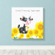 This canvas wall art is shown with a cute country cow and sunflowers art print. 12" x 12" Size