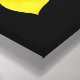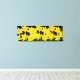Wrapped canvas art is shown with a graphic print of pretty yellow daffodils on a black background colour.