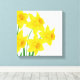 Wrapped canvas art is shown with a graphic print of pretty yellow daffodils on a white background colour.