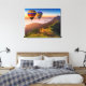 This stretched canvas wall art is shown with a photo print of hot air balloons.