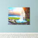 This stretched canvas wall art is shown with a waterfall photo print.