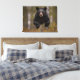 This stretched canvas wall art is shown with a photo print of a black bear jumping in mid air in Yellowstone National Park.