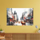 Canvas with New York City, Manhattan. Beautiful painted downtown with yellow cabs.