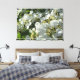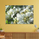 Too often overlooked by landscape designers, the Doublefile Viburnum is a profusely flowering shrub that can get about as wide as it is tall, with an estimated max of 12 feet up and out. The "common" name, which is DOUBLEFILE VIBURNUM, comes from the double configuration of the flowers . . . appearing in twos along the branches. This beauty was found near a discount store. It was planted to hide the dumpster from view and did a really good job of it. With roots (no pun intended) in the orient, this gorgeous shrub will hopefully find more acclaim in the United States. It is offered here on this gorgeous, stretched, wrapped canvas that will create an immediate focal point in virtually any room.