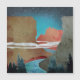 A beautiful landscape with unique textures showing a canyon landscape with a river and starry sky and shades of brown, blue, and magenta.