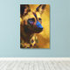 A digital painting that merges hyper-realism with bold, contemporary abstraction. This captivating portrait of a African Wild Dog showcases a harmonious clash of vibrant hues deep blues, golden ochres, and electric greens that breathe life into every fur strand and shadow. The textured, almost cubist brushstrokes add depth and movement, transforming a simple canine profile into a statement of raw beauty and emotional intensity.