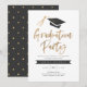 Personalize this stylish and modern graduation party invitation with your name and invitation details. Featuring a gradation cap with gold tassel and modern brush script in faux gold foil. Comes with a matching pattern on the back.