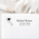 Élégante étiquette d'adresse de retour de remise de diplômes avec chapeau de remise de diplômes.