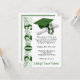 Graduation Invitation, Cap & Diploma theme, with "Year" artwork, in Green and White. Back of invitation includes graduate name, Can be personalized with your own images, artwork, etc.
