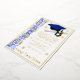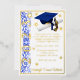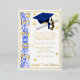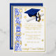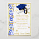 Foil Graduation Invitation, Cap & Diploma theme with foil stars, with "Year" artwork, in Blue and White inks & Gold Foil. Back of invitation includes graduate name, Can be personalized with your own images, artwork, etc. Genuine Italian foil.