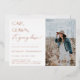 CAP, GOWN, it's going down! Rose Gold Foil Contemporary graduation party photo invitation. Modern typography design on white with black colour backing.