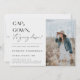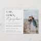 CAP, GOWN, it's going down! Contemporary graduation party photo invitation. Modern typography design on dusty beige colour backgrounds with faux silver geometric pattern backing.