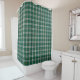 Shower curtain in bright green and white plaid, with black and yellow highlights. Tartan for Cape Breton, Canada. Matching bath mat available.