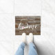 Show some hometown pride with this cute rustic faux wood plank doormat featuring "home" in white calligraphy script lettering with a silhouette map of Cape Cod, Massachusetts standing in for the letter "O." A pink heart illustration inside the state map completes the design; you can change the position of the heart to your home town or beach by opening the design tool and dragging the heart shape. Personalize with your home city, family name and year established to create a perfect finishing touch for your front door, or a memorable housewarming gift.