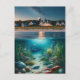 Postcard featuring a beautiful Cape Cod beach house set amidst marine life at night.