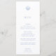 CAPE COD Modern Minimalist, coastal blue, wedding menu. Features, light coastal blue typography and scallop seashell illustration detail. Fonts and colours can be customized by using the design tool feature.