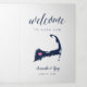 Planning a destination wedding, or expecting lots of out of town guests? Share a welcome message for your Cape Cod wedding guests as well as an itinerary or schedule of the weekend's events. Front features a navy blue silhouette map of Cape Cod, Massachusetts with a pink heart inside. (You can customize the colour of the state and the position of the heart within the design tool!) Personalize the inside with a personal welcome message and a detailed schedule of events or wedding weekend itinerary. Perfect for including in hotel welcome bags or delivering to your guests' rooms.