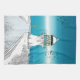 An illustration of Cape Reinga Lighthouse in New Zealand, this is at the top of the North Island. A white line through the sky represents the land of the long white cloud which is the Maori name, Aotearoa for New Zealand area