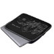 The sleeve is made of nice feeling material and seems very durable. I'm not sure how easy it'll be to clean, but the construction seems sound and the fabric is quick thick. I also like the double zipper. The printing is lovely and appears durable. The white on black contrast is nice, and the design very elegant.