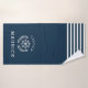 couleur bleu marine avec rayures blanches et détails de nom personnalisés et éléments nautiques La couleur et le texte sont modifiables.