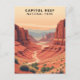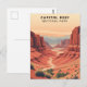 Capture the timeless beauty of Capitol Reef National Park with this vintage-style postcard, featuring its iconic red rock cliffs and sweeping desert views. A perfect keepsake for national park enthusiasts and collectors.