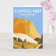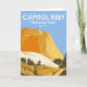 Capitol Reef vector artwork design. The park surrounds a long wrinkle in the earth known as the Waterpocket Fold, with layers of golden sandstone, canyons and striking rock formations.