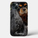 couverture de l'iphone, cavalier spaniel, roi Charles Cavalier Spaniel. Les spaniels cavaliers sont les chiens les plus doux de la planète ! Voici un beau Cavalier noir et bronzé prêt à garder votre téléphone libre des rayures. Couleurs vives et beaucoup de détails intéressants. iPhone 11 12 13 coque avec photo et nomPersonnalisez avec un nom. Choisissez le bon coque pour votre iPhone 11, 12 ou 13. Cavalier Spaniel Art par Carol Cross