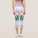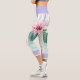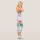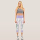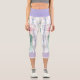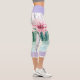 Capris leggings dans un design cactus sur un arrière - plan blanc avec cactus également dans l'arrière - plan. Merci à Hungryjpeg pour certains des éléments du design. Le design comporte également des bordures violettes claires et une bande de taille.