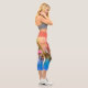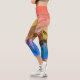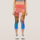 Capri Leggings with an abstract design that actually started from grasses in a pond. The waist band is orange, and the design has orange, green rust, and blue.
